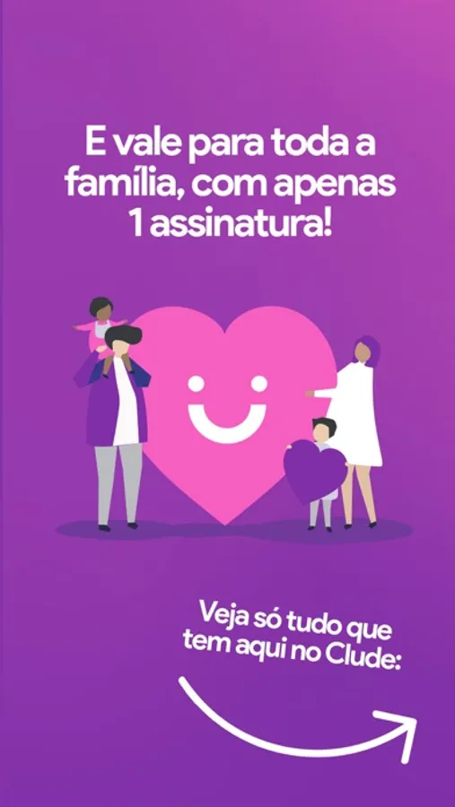 Você, seu cônjuge e filhos de até 18 anos aproveitam tudo que tem no Clude com apenas 1 assinatura.