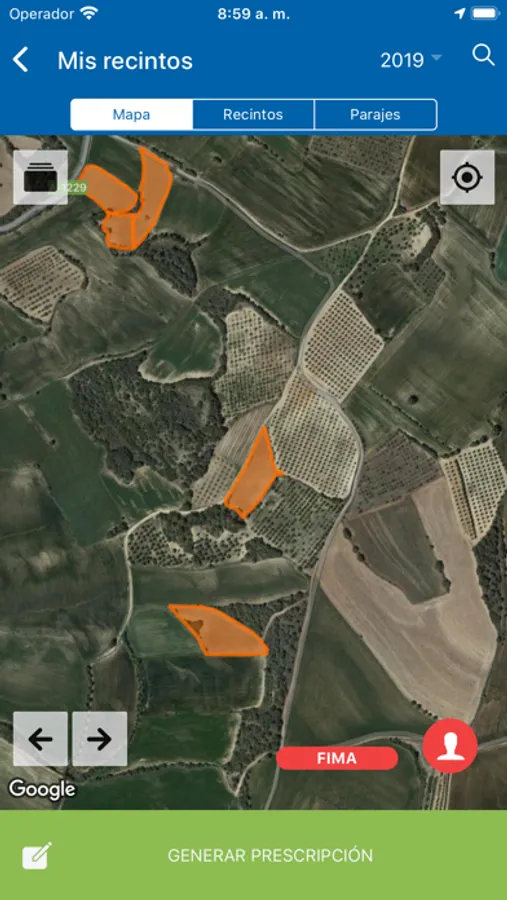 3. Pulsa en Mis recintos para acceder a acceder a la información que has descargado en tu dispositivo y generar tu nueva prescripción fitosanitaria
