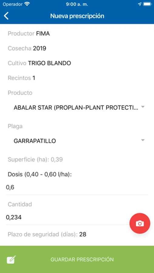 7. Una vez cumplimentado el formulario de la prescripción fitosanitaria pulsa en Guardar prescripción y la prescripción se subirá automáticamente en cuanto tu dispositivo tenga una conexión de datos disponible.