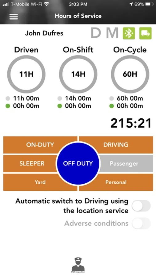 -When the vehicle is stationary for 5 minutes or more, the mobile device will default to on-duty not driving and the driver must enter the proper status