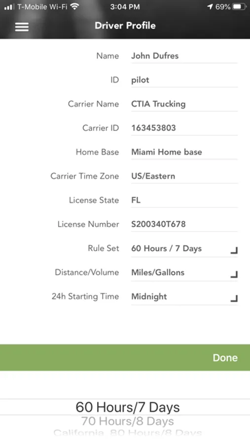 DOT FMCSA self-compliant application to record driver duty status and meet the following regulations: