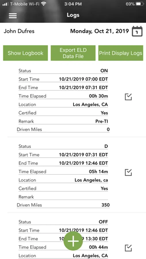 -Mobile device permits duty status changes only when the vehicle is at rest
