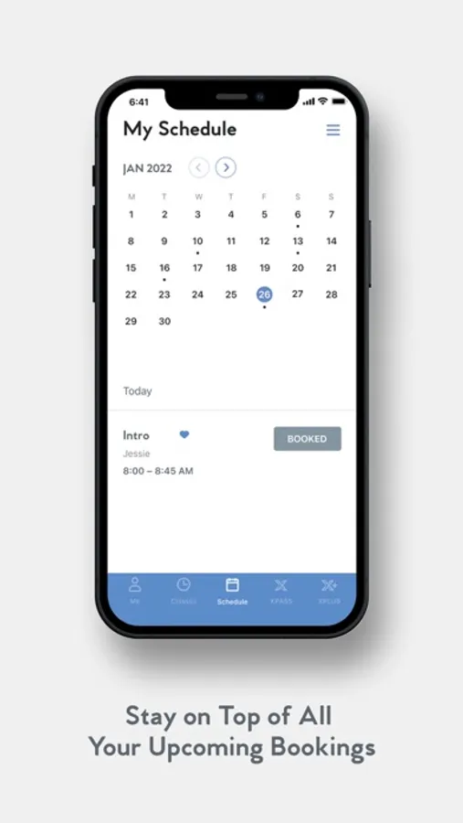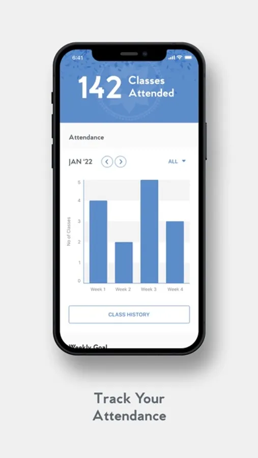 - A personalized home screen that highlights the information most important to you, including upcoming classes and goal progress.