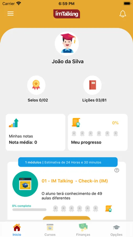 Aplicativo para realização de cursos de Inglês do Instituto Mix.