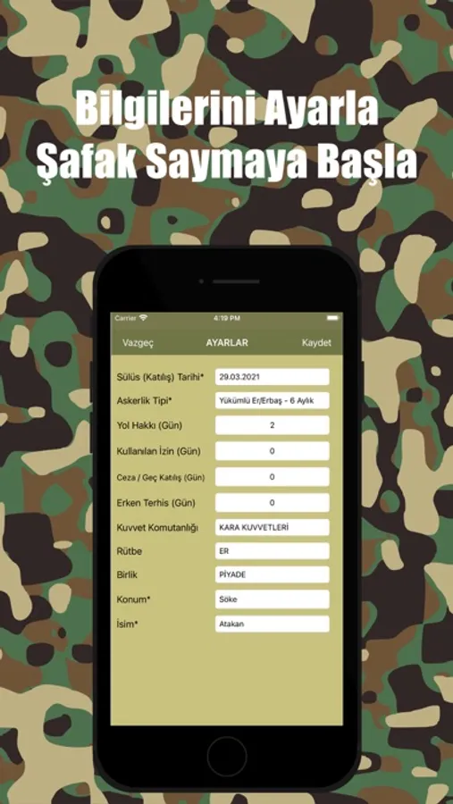 Şafak Sayar Askerlik için bilgilerinizi girin ve şafağınızı uygulama ile en doğru şekilde takip edin.