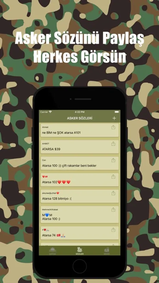 - Beğendiğiniz asker sözlerini sosyal medyada paylaşabilmeyi (Facebook, instagram, twitter vb.)