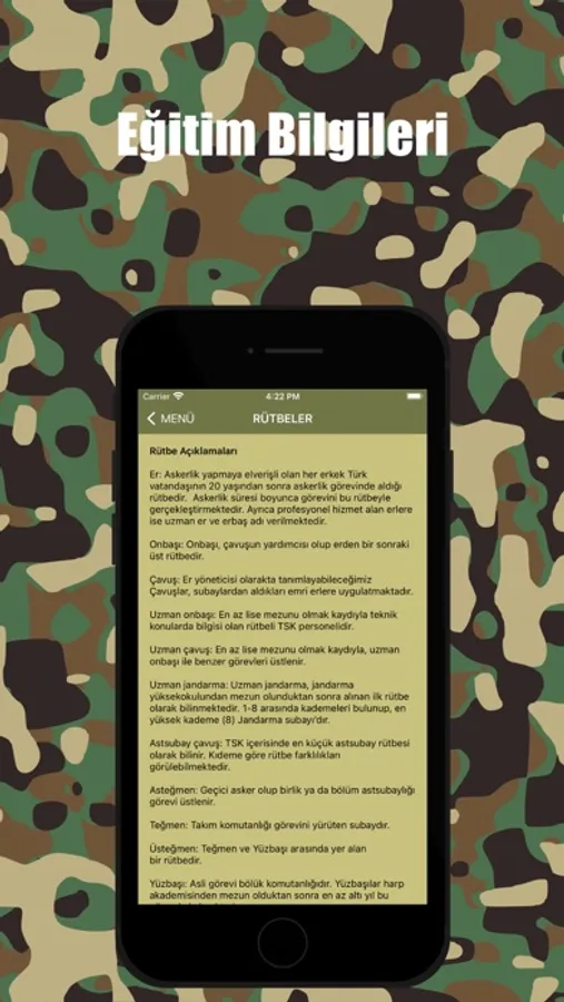 - Rütbe bilgilerini öğrenmenizi ve takip etmenizi sağlamaktadır.