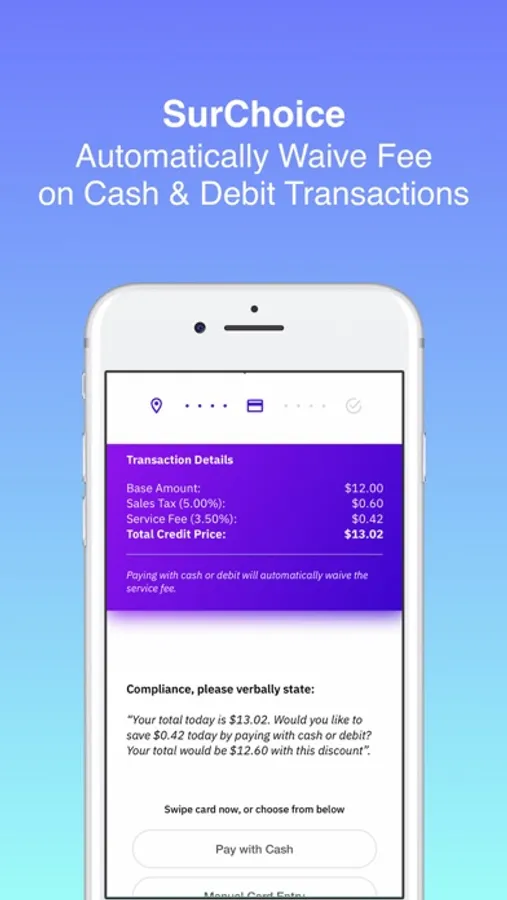 SurChoice keeps you compliant by following the rules set by the card brands. Example: