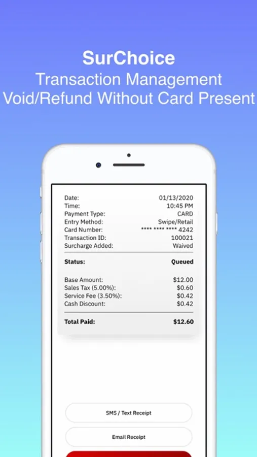 Physical terminals are starting to go away and be replaced by smart devices, such as the one you are holding now. SurChoice helps your smart device accept credit cards while being fully compliant with the state(s) and card brand rules.