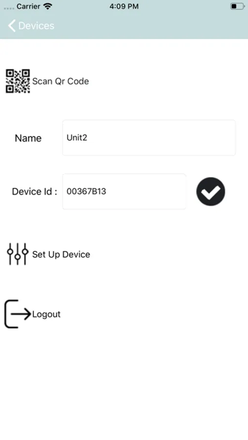 Step 1 - Either Scan the QR code or enter the Device ID located on the bottom of the warmer. When completed tap the check mark.