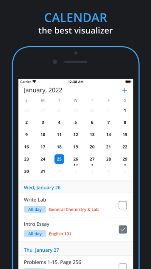 Beautiful calendar showcasing all of your assignments for simple navigating.