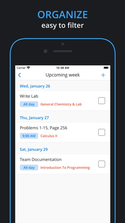 3. Start adding assignments and completing them by either swiping or tapping the complete button!
