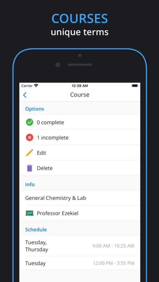 Add as many courses as you need per your term and stay on top!