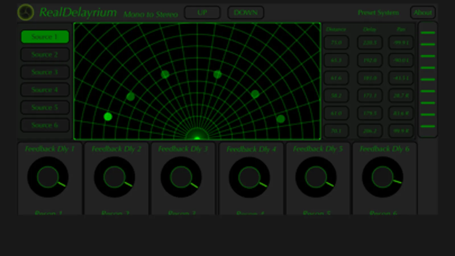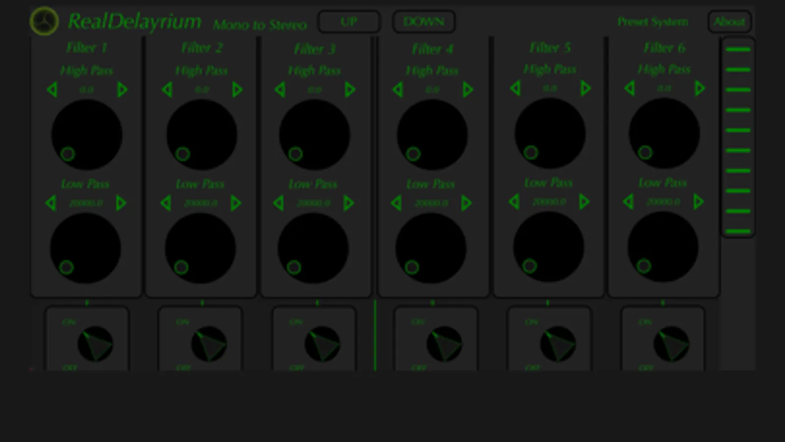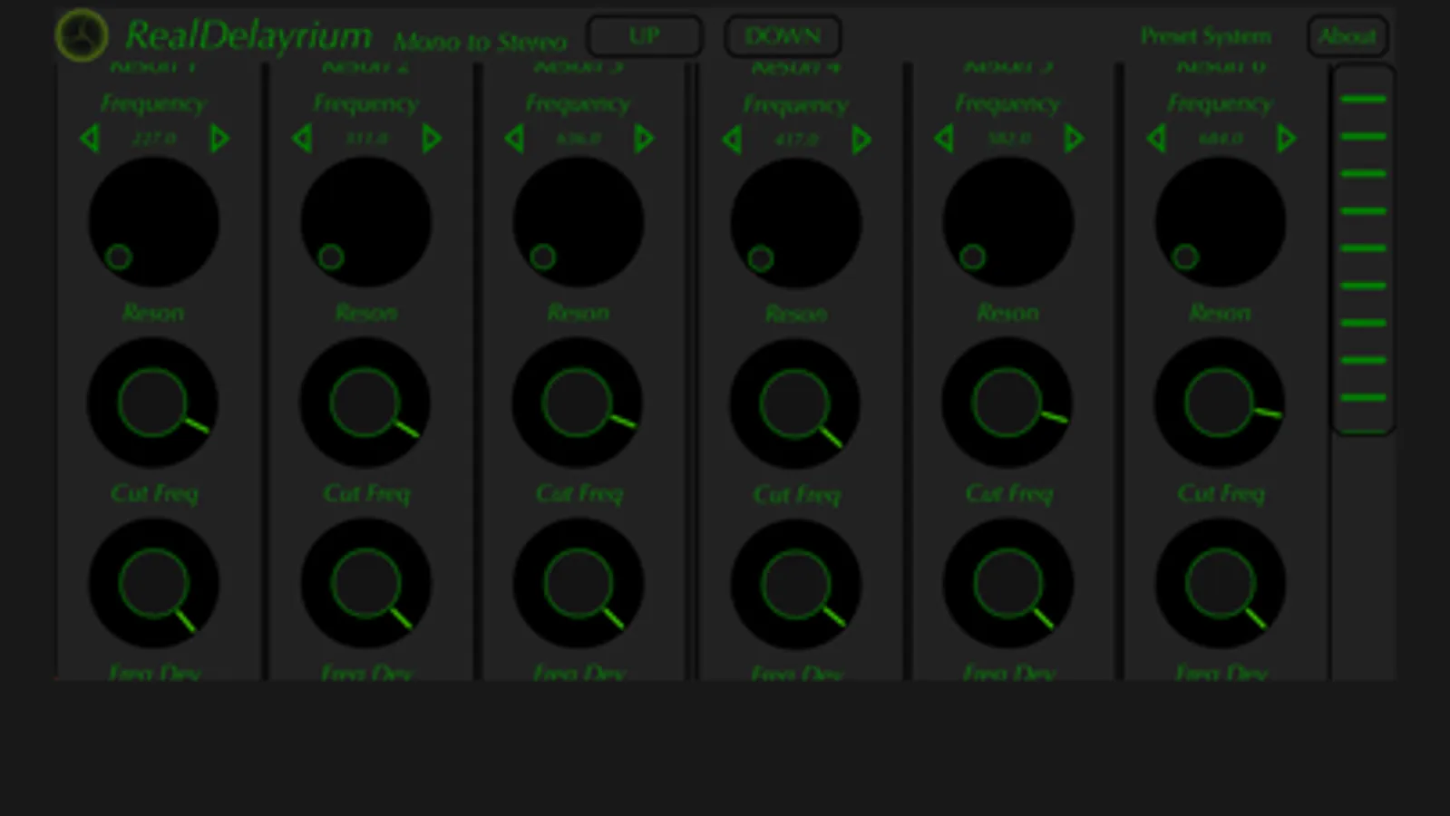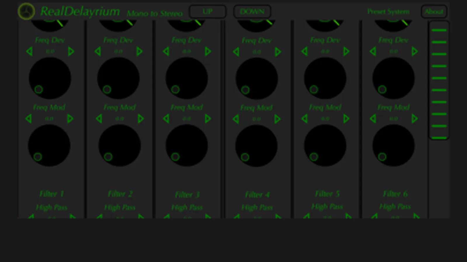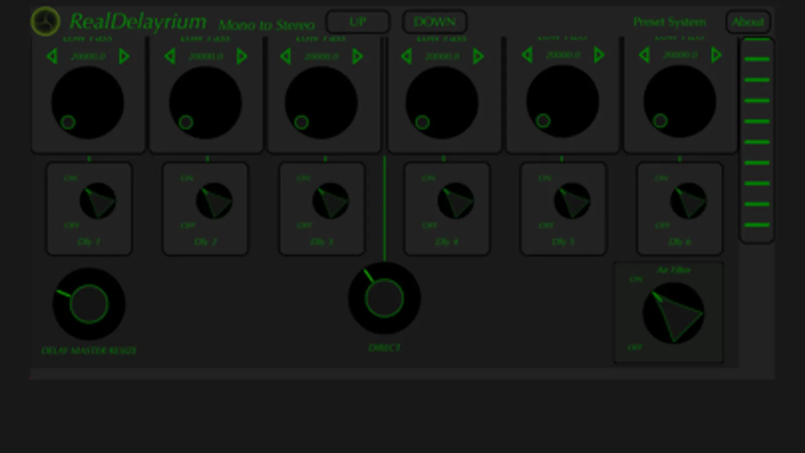 RealDelayrium is a MultiDelay Audio Units PlugIn in parallel approach. It is based on 6 delay line with controls in Time, Feedback, Reson Filter, Frequency Modulation, LowPass, HighPass and Air Filter.