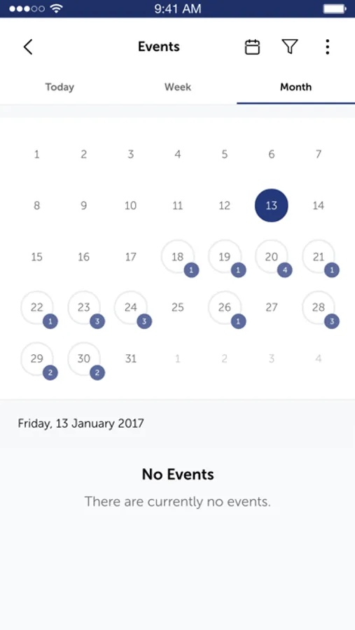 Calendar: The Calendar provides carers a personalised view of what's coming up for the day or in the future.