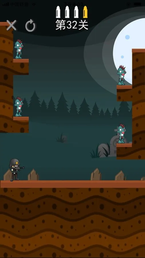 射杀僵尸是一款独特的益智游戏,你需要充分利用你的大脑,通过精准的瞄准和极致的专注来射击敌人。解决难解的谜题可以体会到满满的成就感。游戏特色:1. 出色的物理效果(充分考虑摩擦力、重力、碰撞等细节)多种物体模型设计各具特色,重量和摩擦力的差异会使物体在被射击或碰撞的时候产生截然不同的效果。• 紫色和蓝色的玻璃可以将僵尸砸成肉泥;• 木箱可以被子弹打碎;• 锯齿碰到僵尸会直接造成伤害;• 炸弹桶是危险品,稍不注意就会立即引爆!2. 策略性(优秀的关卡设计需要发挥你的智商)物体与地面场景的结合,会产生无限的可能性!你需要找出最准确的方式来击毙你的敌人。子弹的反弹、箱子的坠落、锯齿的碰撞,丰富多彩的关卡让游戏的策略性和娱乐性都有了大大的增强。3. 挑战性(一击毙命,以最少的子弹击败最多的敌人)当你能够熟练掌握游戏机制和射击技巧后,你面临的下一项挑战就是能否一击毙命,获得三星奖励!金色的子弹消耗光之前,击毙场上所有僵尸,即可获得3星奖励;使用白色子弹进行射击会降低结算时候的星级。如果对当前的成绩不满意,可以重新挑战本关卡,三颗星不仅仅是为了获得奖励,更是证明你实力的最好方式!l 扭蛋机玩家投入硬币,可以开启一个扭蛋,获得奖励!在扭蛋中,你可能开出很多奇怪的东西比如小木马、铜钱,甚至是一个香菇或一根胡萝卜,所有抽到的物品都会被摆放在图鉴展示架上。