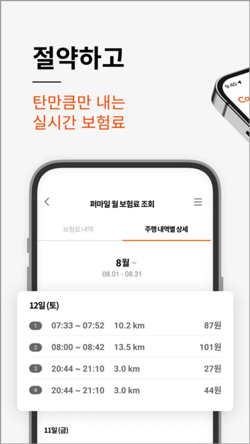 이번 달 주행거리 확인하고 자동차 보험료 바로 계산해요.