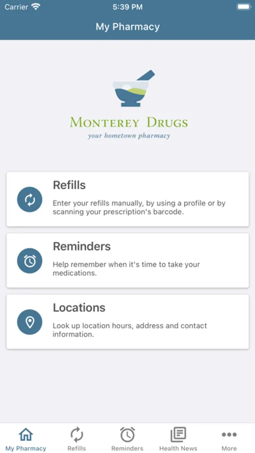 The Monterey Drugs app allows you and your family to securely communicate with your local pharmacy. Refill your prescriptions with one click, get refill reminders, get discounts at your local pharmacy, get savings on brand drugs and access Pharmacist written pages that help you understand your condition or medications.