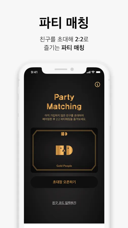 나와 상대가 친구 1명씩 초대를 해 2:2로 파티를 즐길 수 있어요.