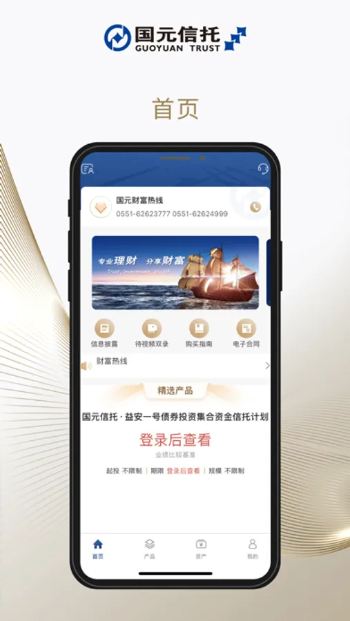 国元信托APP3.0是专为高净值客户打造的移动APP,致力于向客户提供产品展示、产品在线预约、远程双录、电子签约、业务办理等一站式服务,是您贴心的7*24小时的私人财富管家。