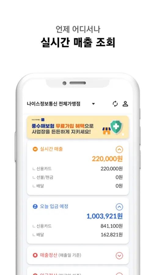 나이스정보통신 가맹점이라면 가맹점에서도 밖에서도 매출정보를 실시간으로 확인할 수 있어요.