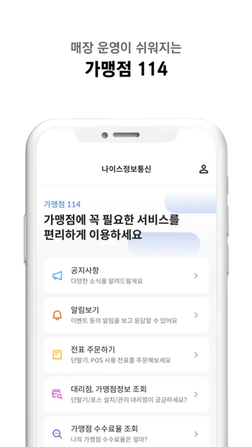 - 나이스정보통신 가맹점 및 대리점 사장님을 위한 맞춤형 나이스체크 앱을 무료로 운영하고 있습니다.