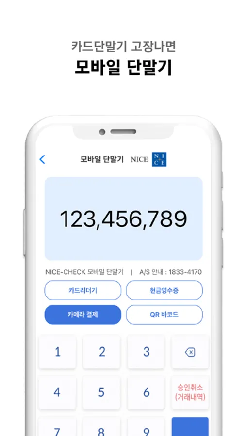 갑자기 결제가 안될때 나이스체크앱을 사용해 보세요. 무선리더기가 없어도 결제가 가능합니다.