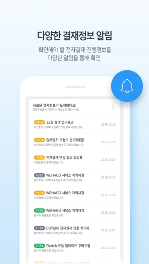 다양한 결재정보 알림 - 사용자가 확인해야 할 전자결재 진행정보를 다양한 알림을 통해 확인하실 수 있습니다.