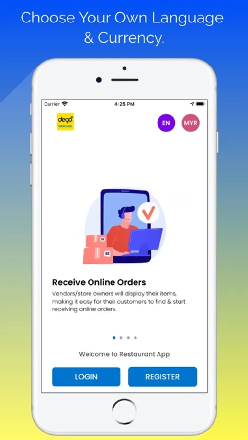 The Dego Merchant mobile application allows business owner(s) and administrator(s) to control and manage their products, services, orders and customers.