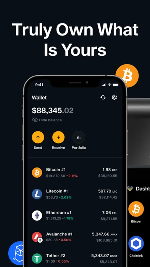 Bitcoin (BTC), Bitcoin Cash (BCH), Ethereum (ETH), Dash (DASH), Zcash (ZEC), Litecoin (LTC), Binance Coin (BNB), XRP (XRP), Dogecoin (DOGE), Tezos (XTZ), MultiversX (EGLD), Solana (SOL), Polygon (MATIC), Avalanche (AVAX) and Stellar (XLM).