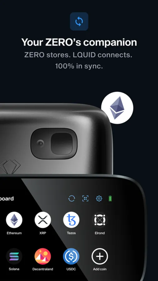Sync your LIQUID app to your ZERO hardware wallet and check in real-time your crypto accounts while your keys remain securely offline. Hot speed, cold security.