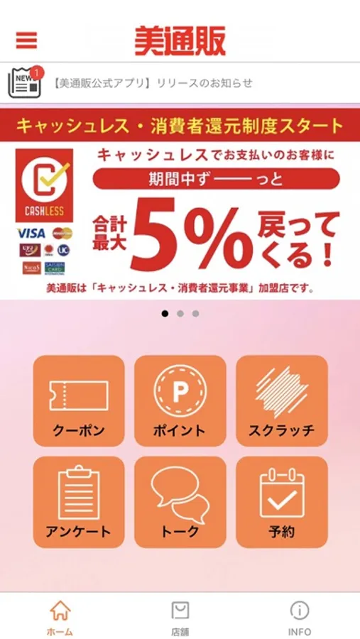美通販店舗でのお買い物を便利にする公式アプリです。メンバーズカードの表示やクーポンの取得、店鋪イベントやセール、キャンペーンなどのお得な情報を得られます。