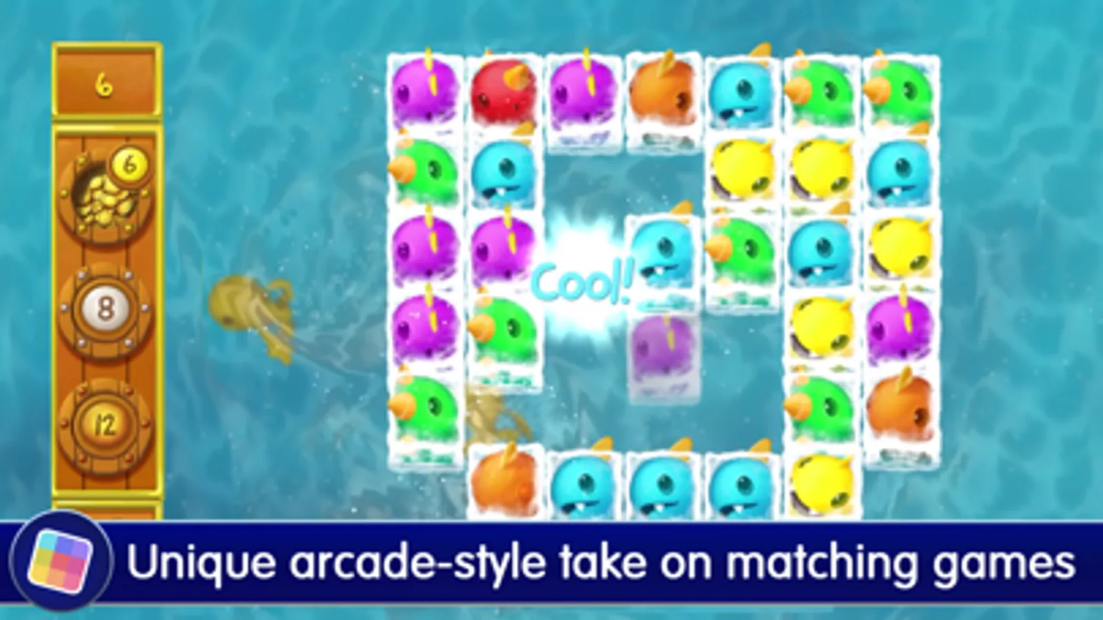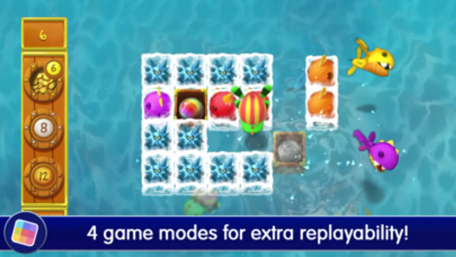 Take on four different modes of play. Minute Match tasks you with scoring as many points as possible in one minute. In Wave Mode, you have to clear out waves of fish before the timer runs out. Fish Fight sees you going face-to-fin against giant underwater beasts, trying to push them into the depths before they make a lunch of you. The Puzzles mode tests your wits, challenging you to clear the board in as few moves as possible. No matter how you play, you'll have an ocean of fun!