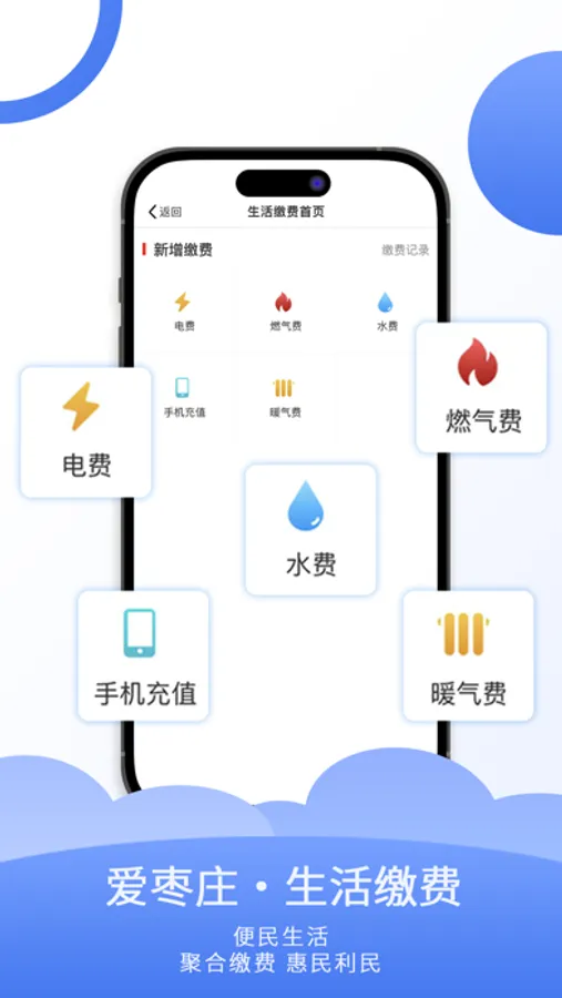 智能聚合缴费更轻松,用户可在爱枣庄生活缴费应用中一键缴纳水、电、气、暖费用,无需来回切换缴费种类,方便快捷。