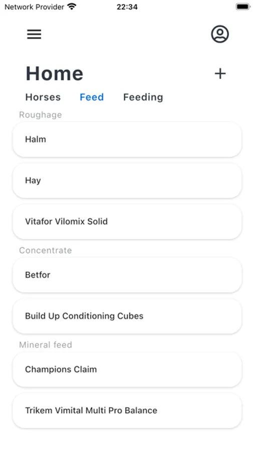 In the app, you can enter information about your horses and their feed and then calculate a complete ration for each individual horse according to their needs.