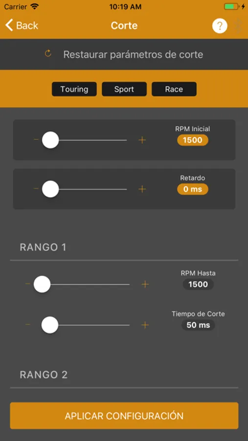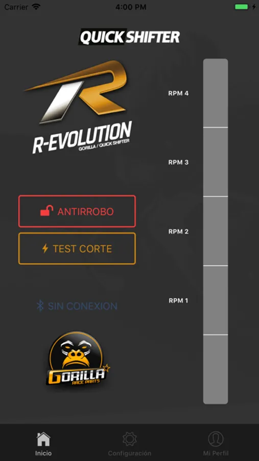 Aplicación gratuita para configurar el modulo Quick Shifter Gorilla R-Evolution a traves de Bluetooth.