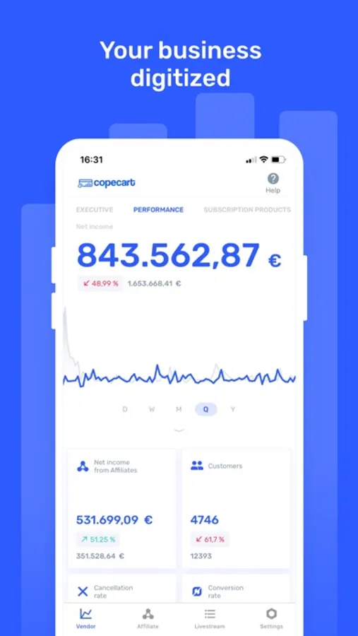 CopeCart plays an important and essential role in the online business industry. We provide small and medium-sized companies with all the functionality designed to make their sales activities efficient, beneficial, and successful. With our affinity for numbers here at CopeCart, we not just help to simplify business processes and reporting algorithms, but also open a whole new overview of your company.