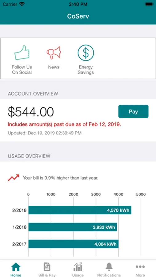 Pay your bill securely and on time each month. View your current account balance and due date, manage recurring payments, and modify payment methods. View bill history including PDF versions of paper bills directly on your mobile device.