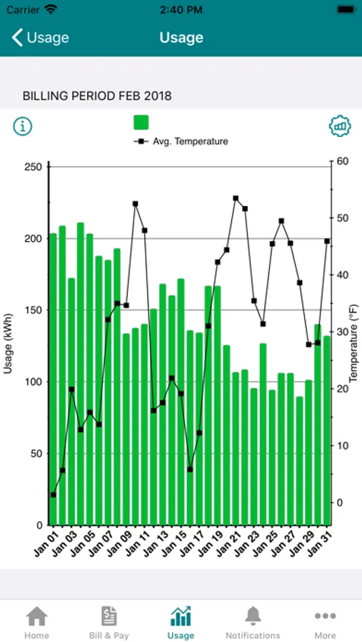Keep tabs on your monthly gas usage and view your electricity usage at daily, weekly and monthly intervals. Compare your usage against outside temperatures and neighborhood averages.
