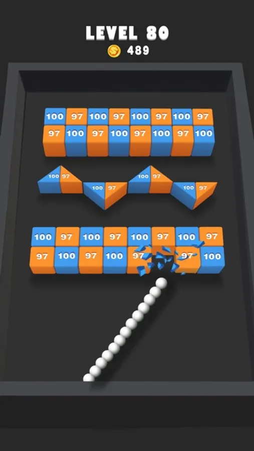 In Block Blast 3D, you should destroy all blocks by shooting balls. And you have 50 balls in every round. Try your best to destroy more blocks in a round, because the blocks will down in the end of your round. When all blocks are destroyed, the level is passed.
