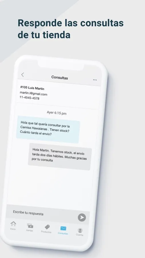 - Recibe las notificaciones de las nuevas ventas y consultas al instante en tu celular.