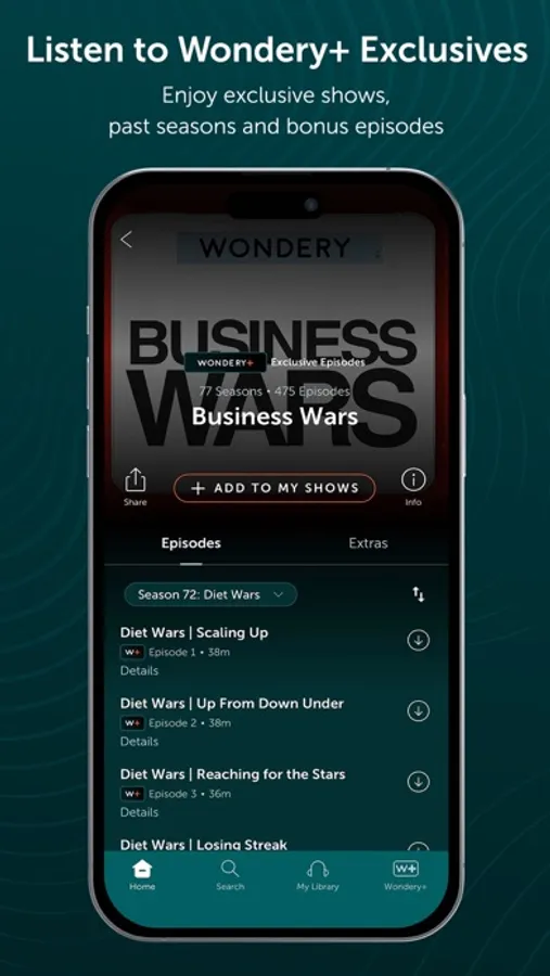 We’ve also got audio shows & seasons that you can listen to ad-free, such as My Favorite Murder, RedHanded, Morbid, Something Was Wrong, Small Town Murder, SmartLess, & This is Actually Happening. And, in iOS, Wondery+ offers podcasts in Dolby Atmos, to heighten your immersive listening experience, whether you’re listening to News, History, True Crime, Comedy or Sports with spatial audio!