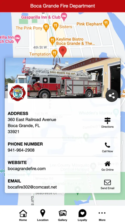 The Boca Grande Fire Department serves a population of approximately 6,000 residents on beautiful Gasparilla Island.