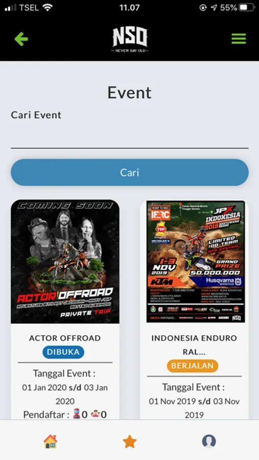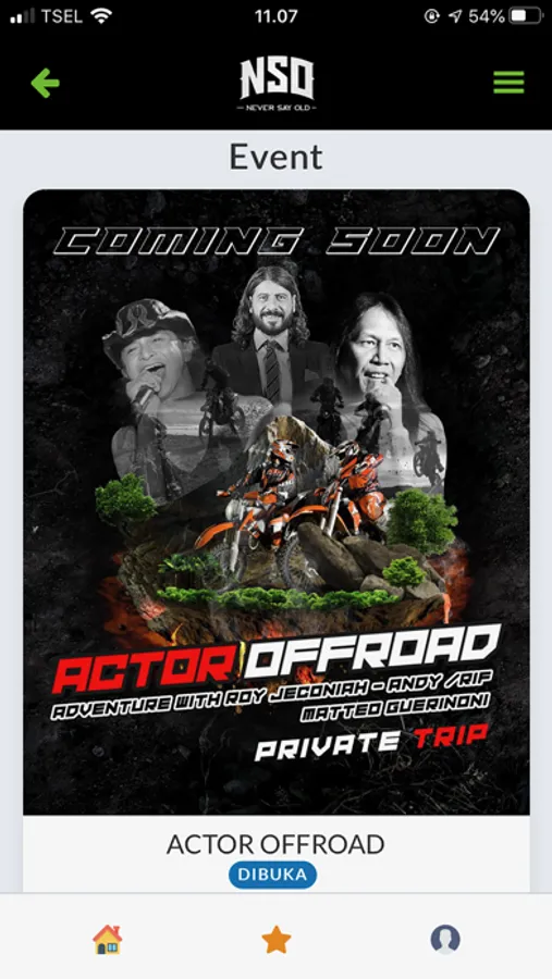 NSO Project adalah aplikasi pusat event-event dari NSO Project, selain itu juga terdapat, fitur wisata yang berisi daftar wisata yang disediakan, galeri dan dokumentasi event-event, verified rider dan verified team yang berisi data pembalap yang sudah diverifikasi, menjual berbagai macam merchandise bertema event yang dijalankan. Aplikasi ini dibuat untuk memudahkan tim dan pembalap untuk melakukan pendaftaran, manajemen tim ataupun pembalap, dan monitoring hasil event-event yang tersedia.