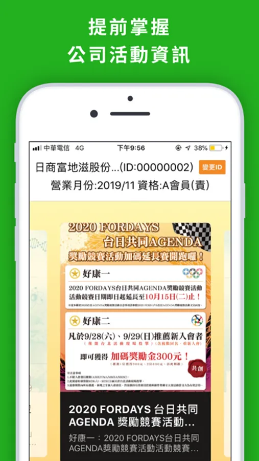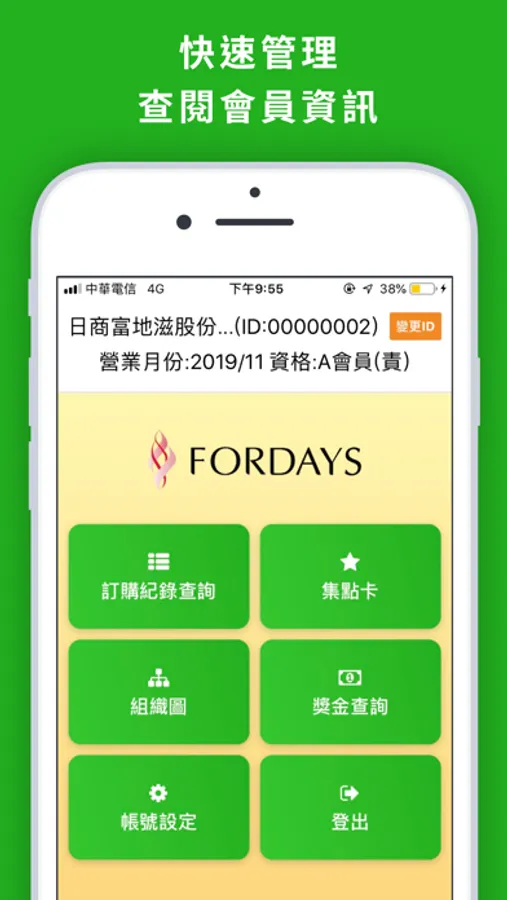 日商富地滋(股)台灣分公司FORDAYS會員專屬行動應用APP,方便會員查詢訂單狀況、組織圖以及快速掌握公司最新公告訊息與活動資訊。