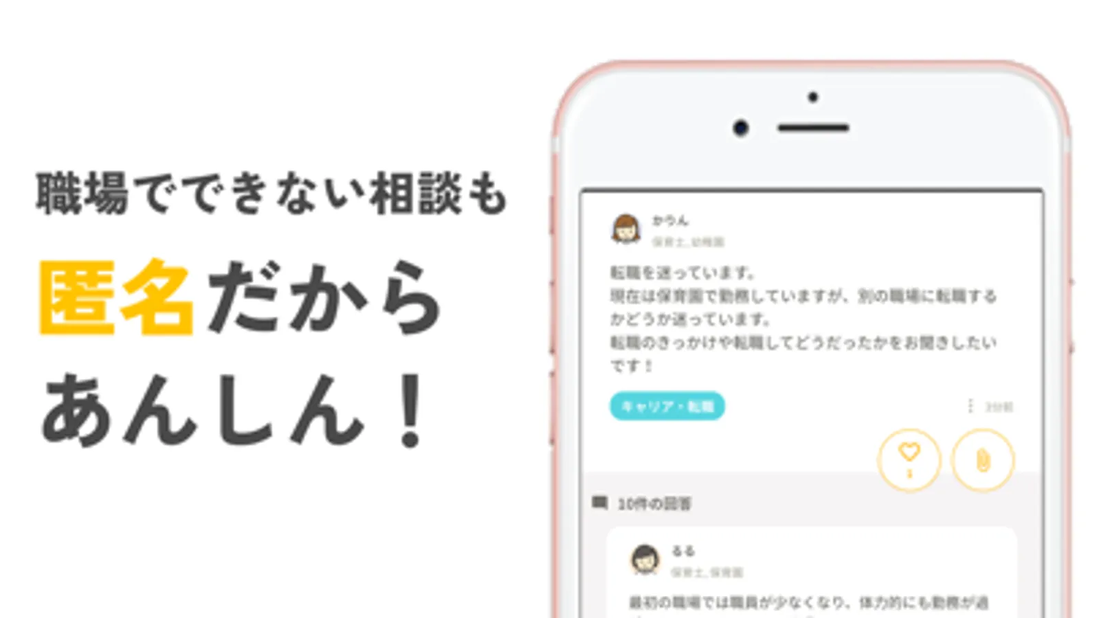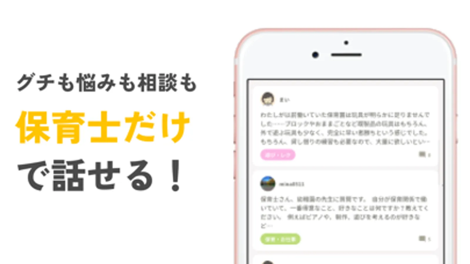 ホイクトークは、保育士の方だけでお悩みの相談などができるコミュニティアプリです。