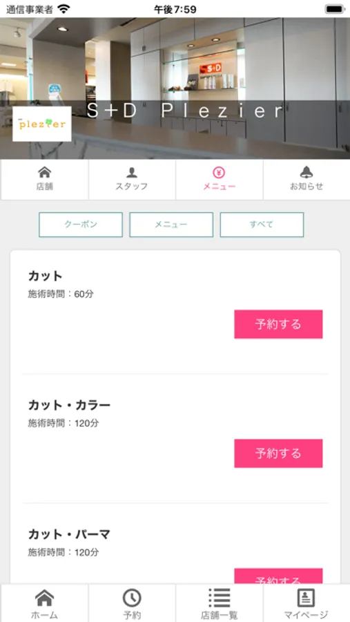 これまでの来店履歴や予約内容、お店からのお知らせをチェック。