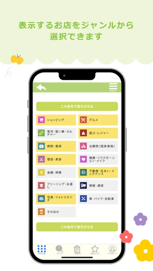 ジャンル・エリア・サービスからお店を絞り込んで検索ができます。
