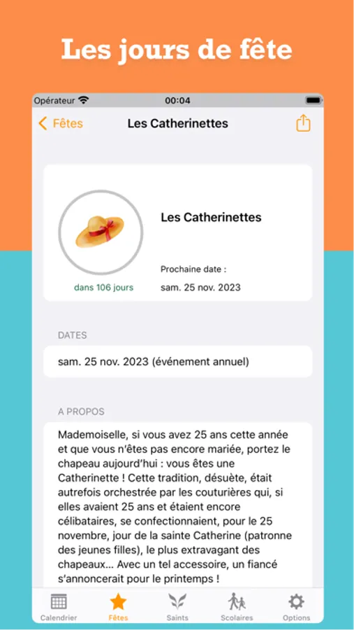 • Les "Saints du jour" peuvent être ajoutés au calendrier natif iOS.