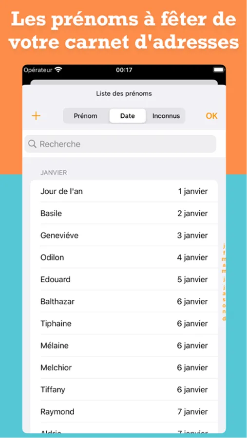 • Les "Prénoms à fêter" peuvent être ajoutés au calendrier natif iOS.
